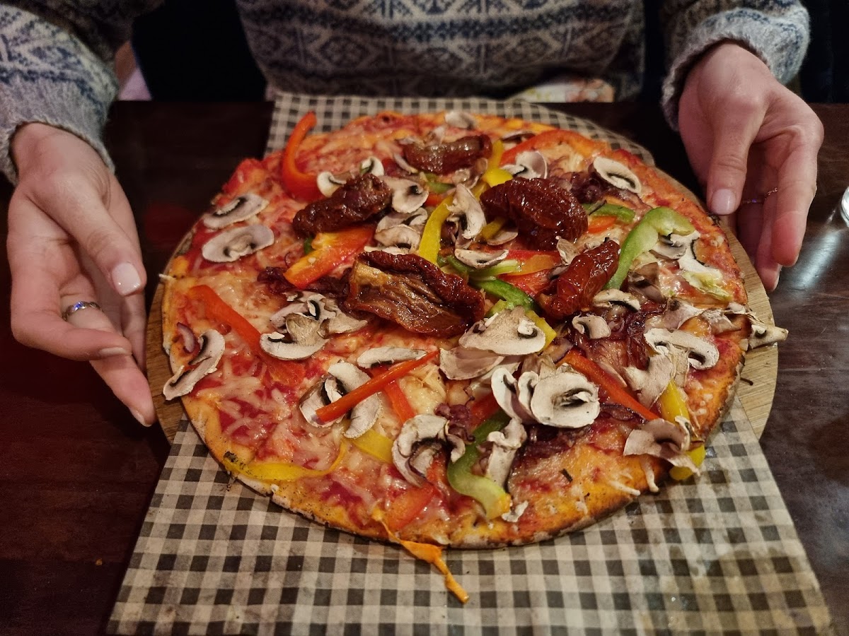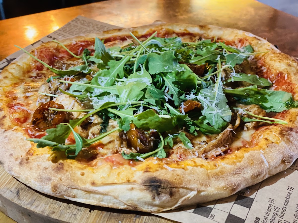 Nice atmosphere and excellent decor. Shannon our server was great, very friendly, and knowledgeable about the menu. The Gluten-free pizza bases are full-size and better than most but wasn't so keen on the vegan-mozzarella. The "Pulled Porko" was good but their Triple cooked chips (fries for our American friends) sealed the deal. Will be back next time I'm passing.